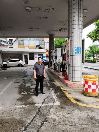 加油站的南面是朱方路,路的南面是門面房和住宅區(二類保護物);北面和西面是西苑新村居民樓(二類保護物);東面圍墻外是洗浴中心 (二類保護物)。